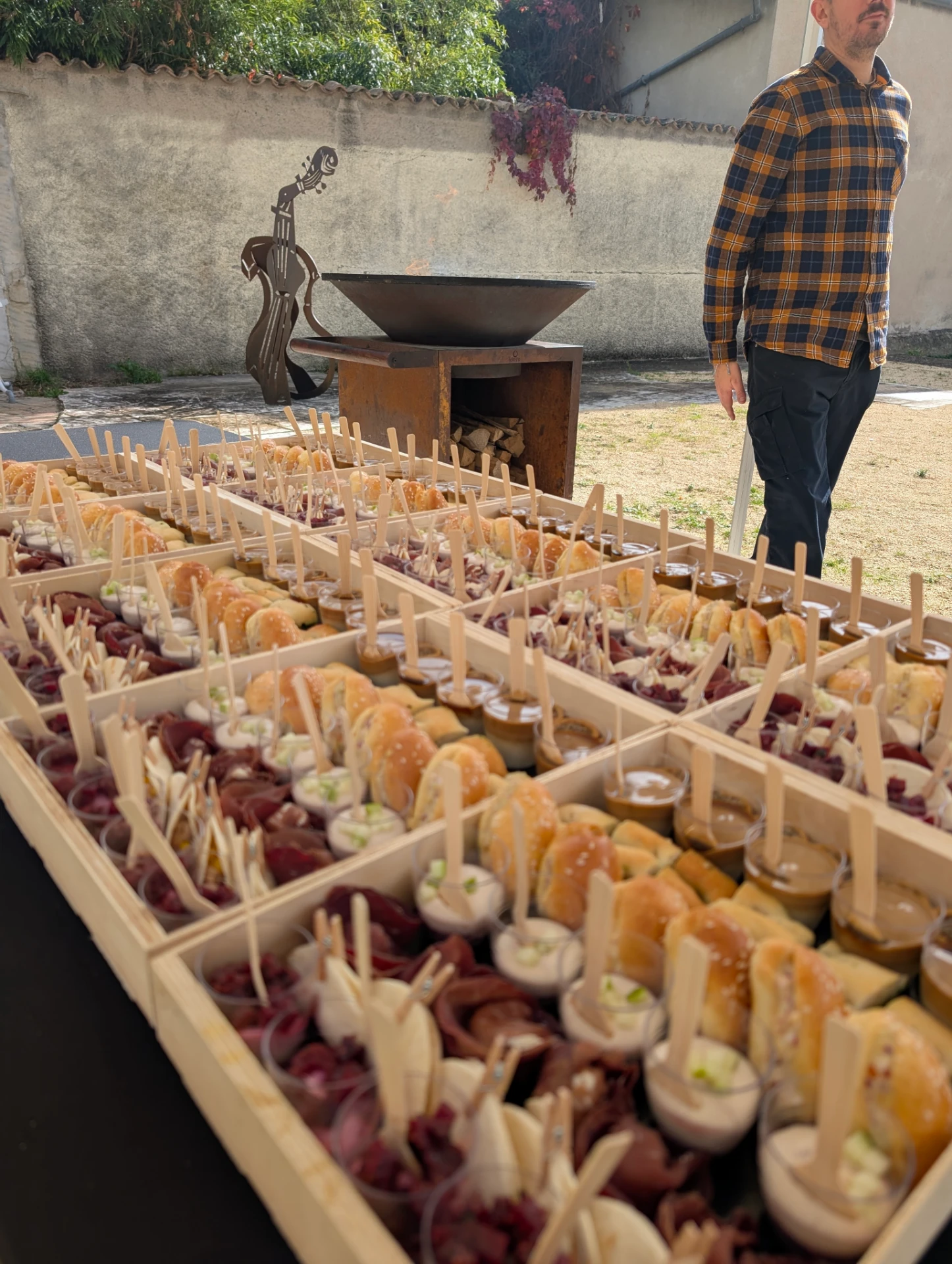 Oui, nous proposons des options végétariennes et vegan, sur simple demande. Selon l’animation choisie, nous adaptons les recettes, les garnitures et les accompagnements pour conserver la même expérience, le même plaisir… et un rendu tout aussi gourmand !